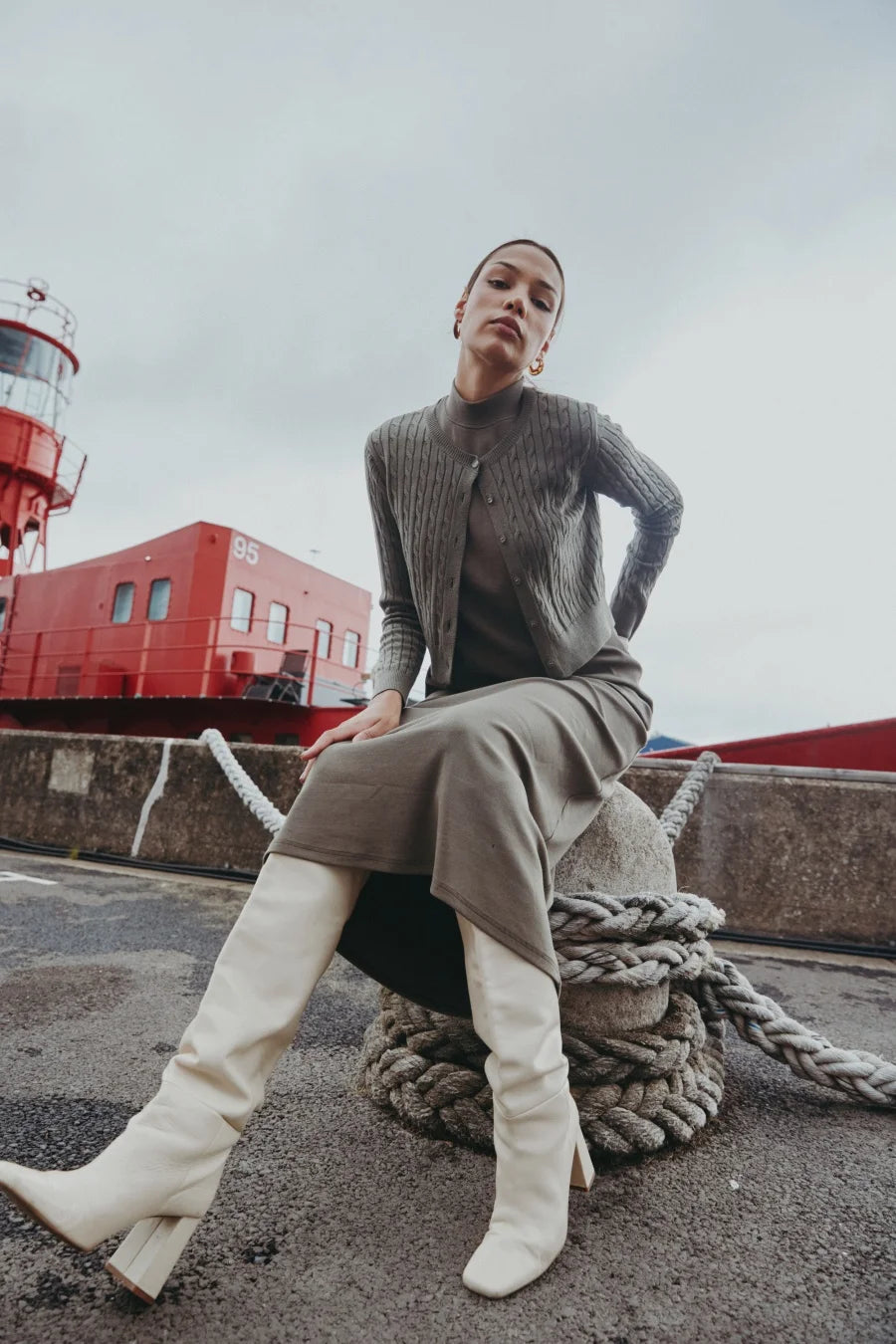 Effortless elegance meets modern comfort in this soft cable knit short Cardigan. Designed to flatter with high-stretch fabric and a smooth, body-skimming silhouette, this cardigan is perfect for everyday sophistication, brunch dates, office chic, or evening styling.