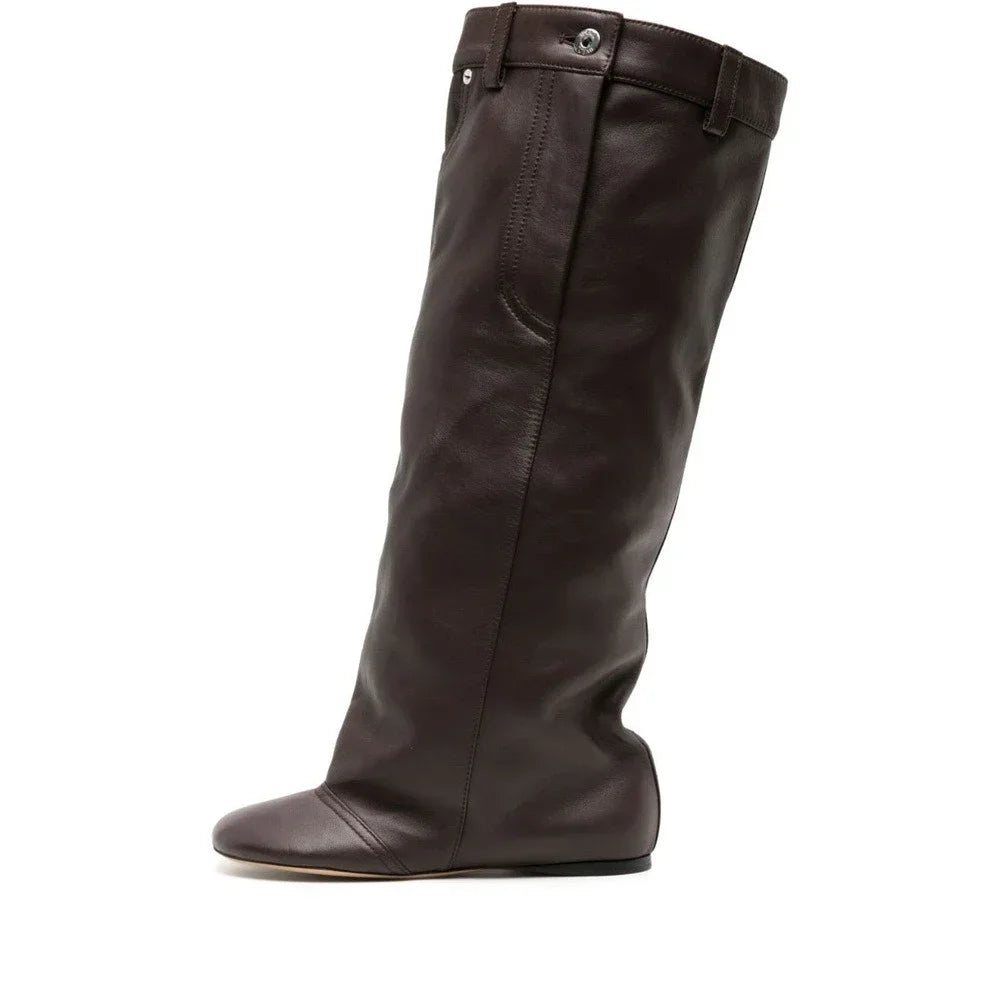 The slip-on construction and soft PU finish create a smooth silhouette that pairs effortlessly with dresses, skirts, or layered winter looks. Perfect for nights out, fashion events, or elevating everyday outfits with confidence and edge.