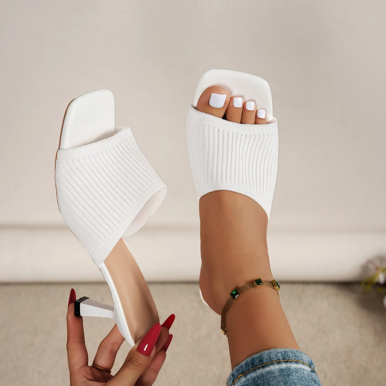 Women Sandals New Luxury Summer Outdoor Slippers Casual Women Shoes Open Toe Soft High Heels Mules Sandals Sandalias De Mujer