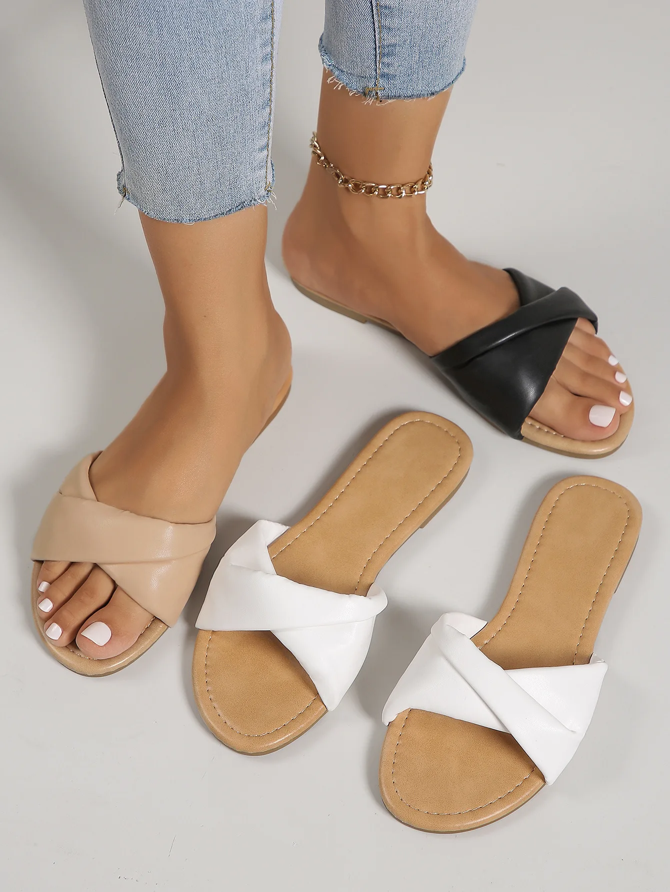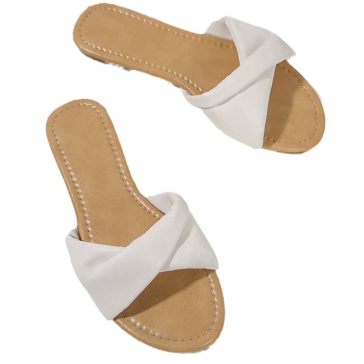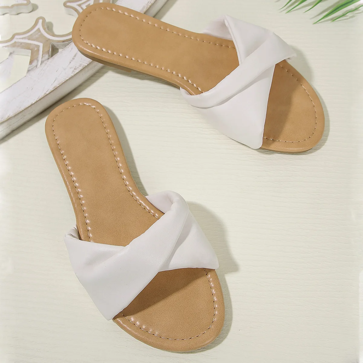 Women's Flat Beach Sandals Simple Fashion Slides With Soft Leather White Slippers sandals for women and ladies free shipping